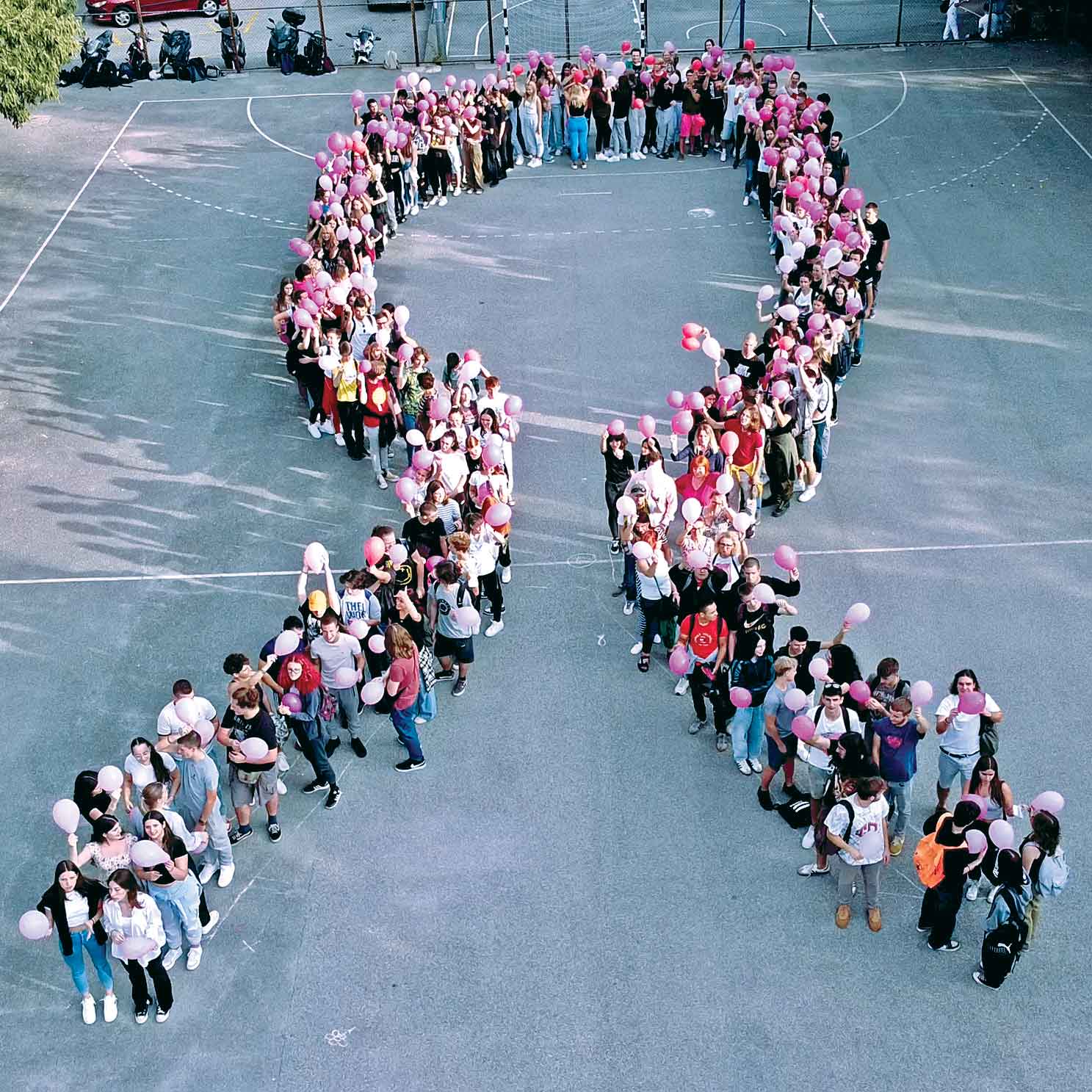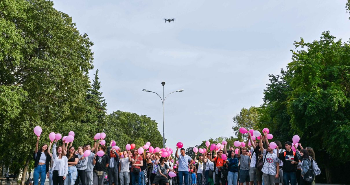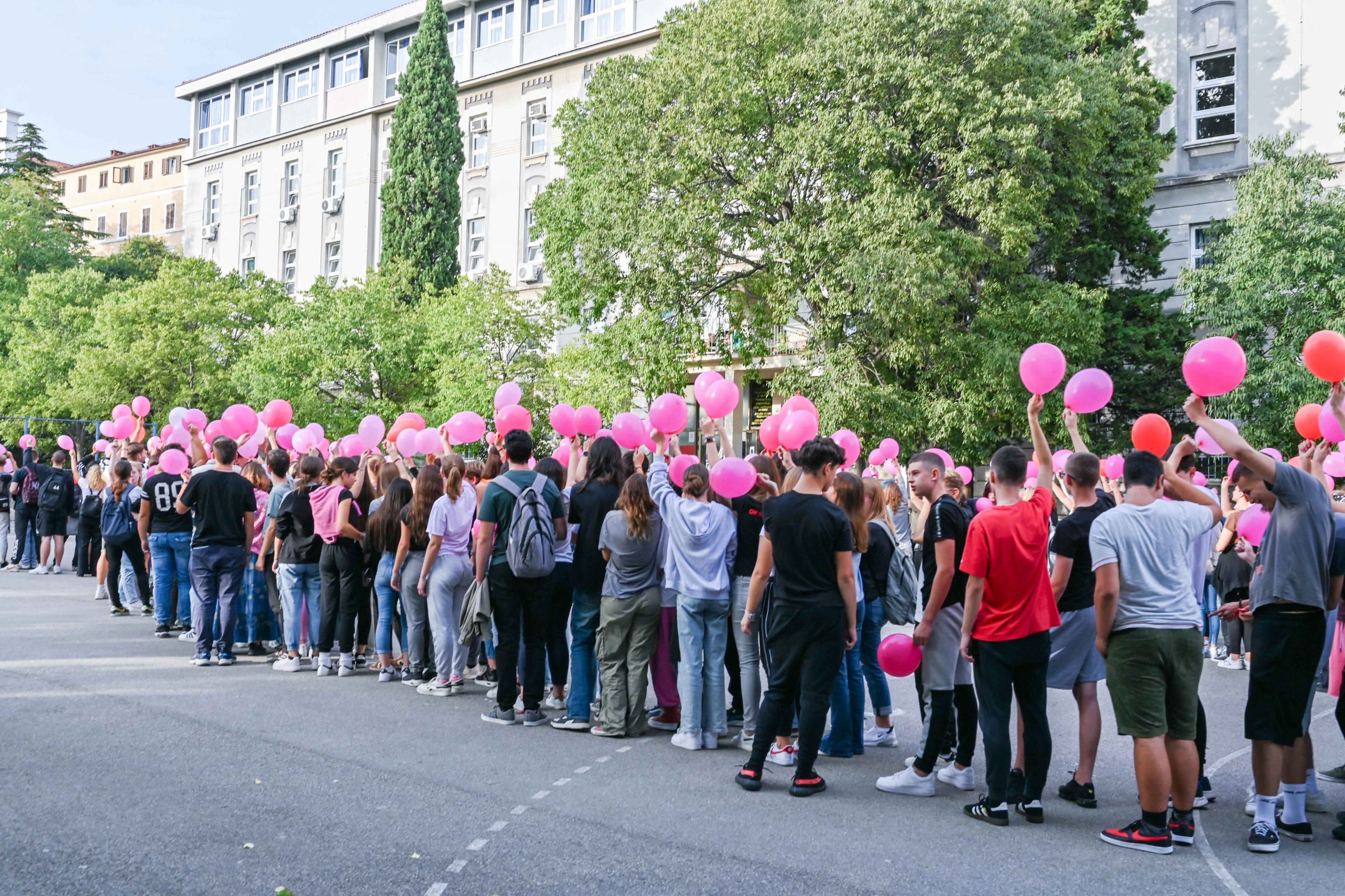 Ružičasti listopad”. Učenici i nastavnicima svojim su tijelima i balonima formirali simboličnu
